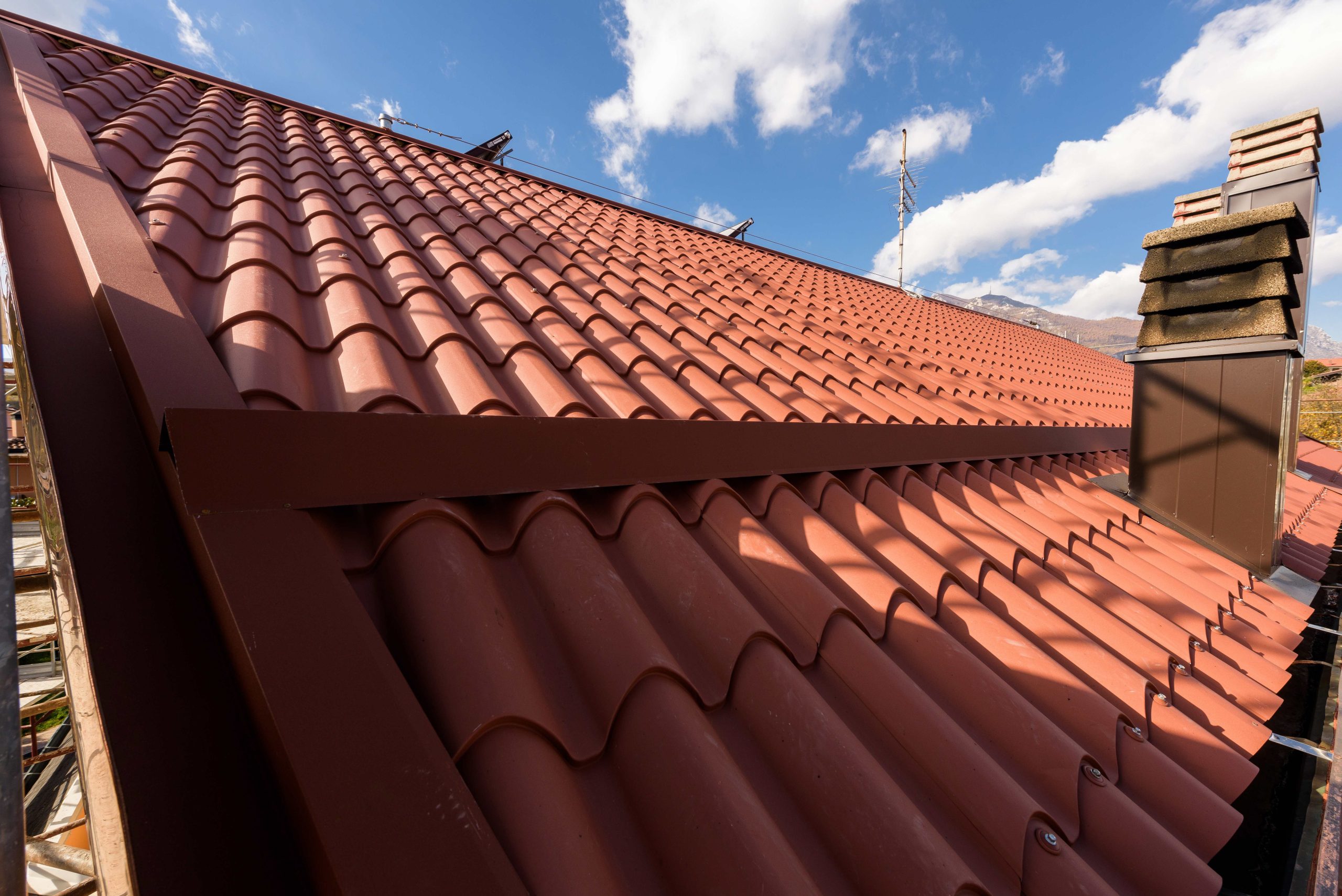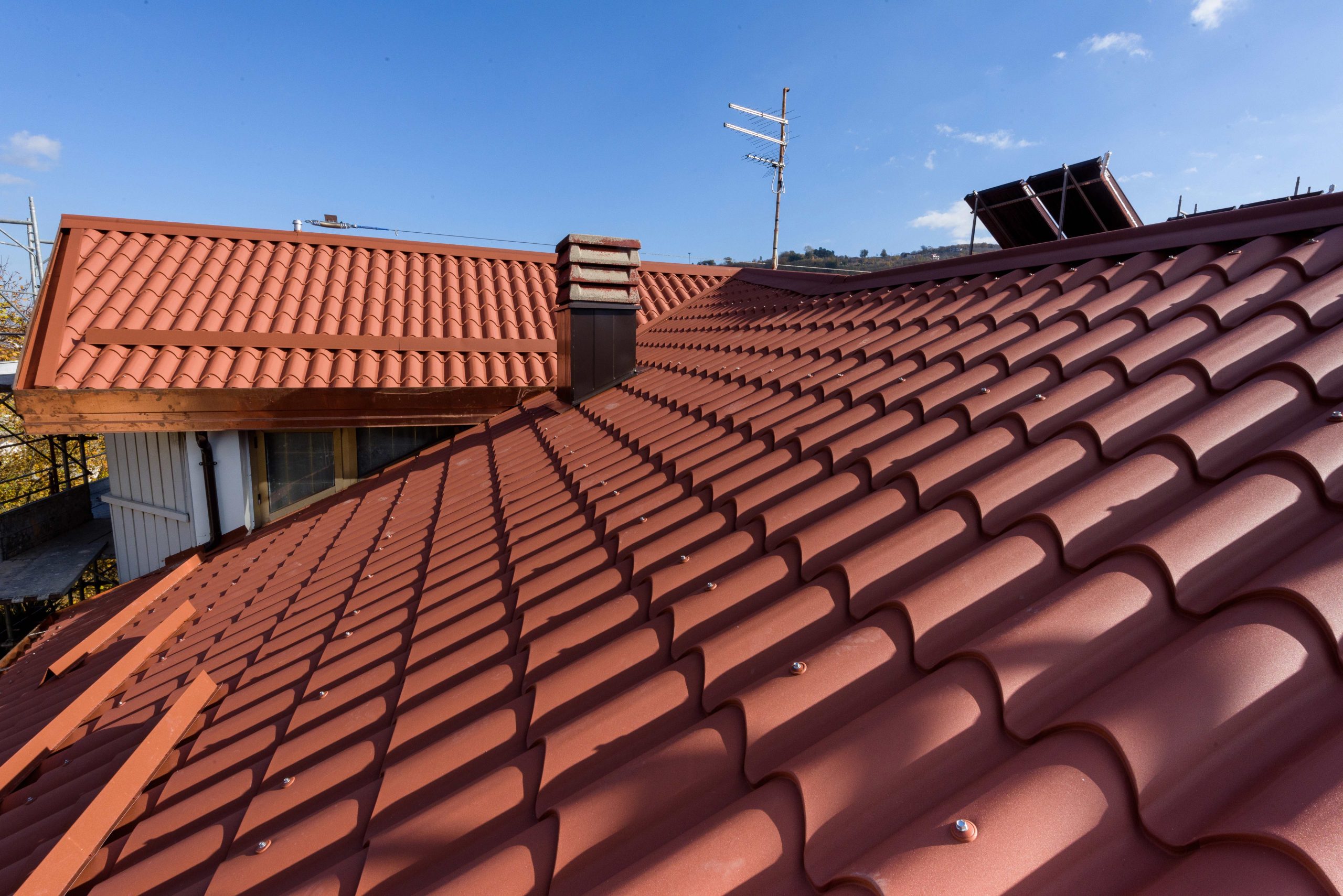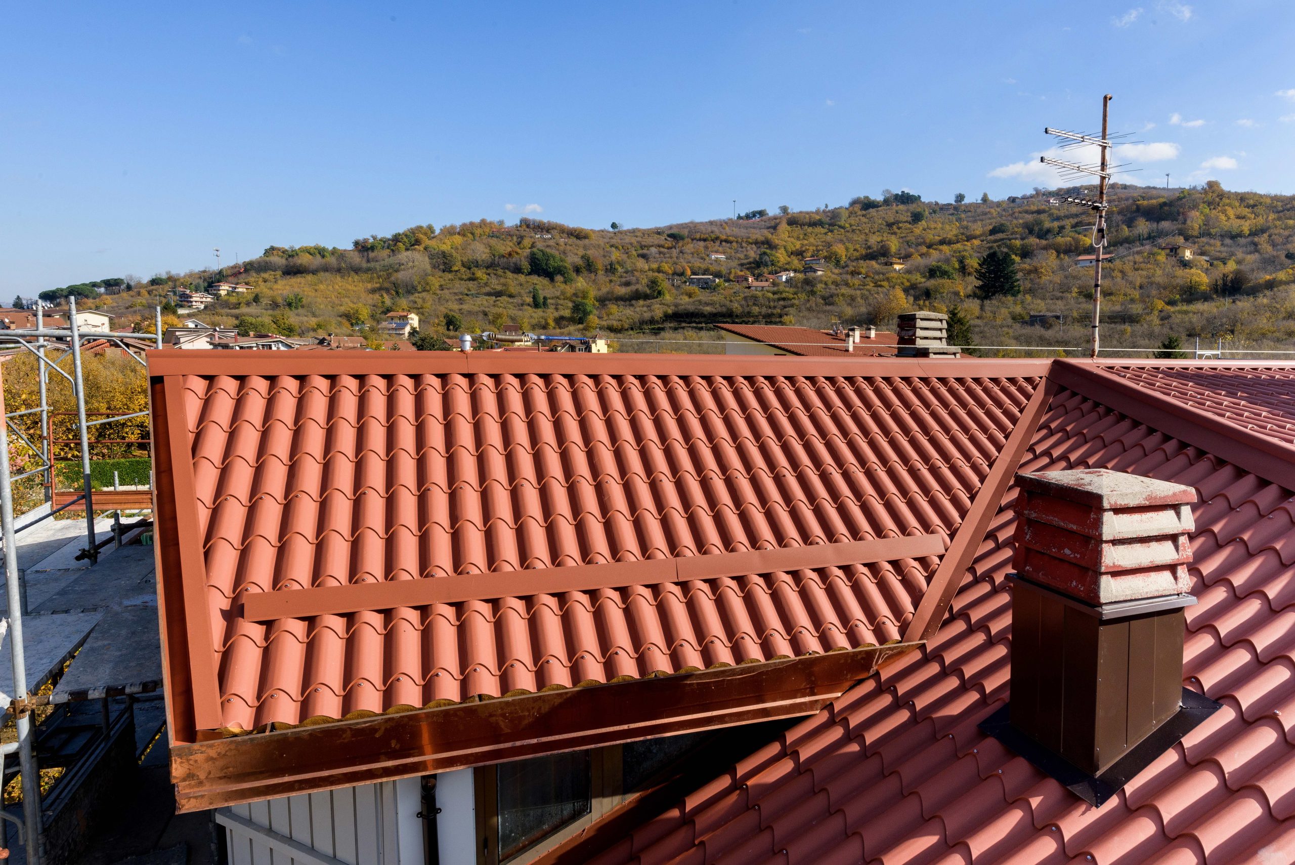Realizzazione e ripristino di nuova una copertura in pannelli lastra Alubel IsoCoppo Piano rosso etrusco completa di lattoneria Avellino . Rifacimento tetti RutaRoof tel. +39 347 5963966 –