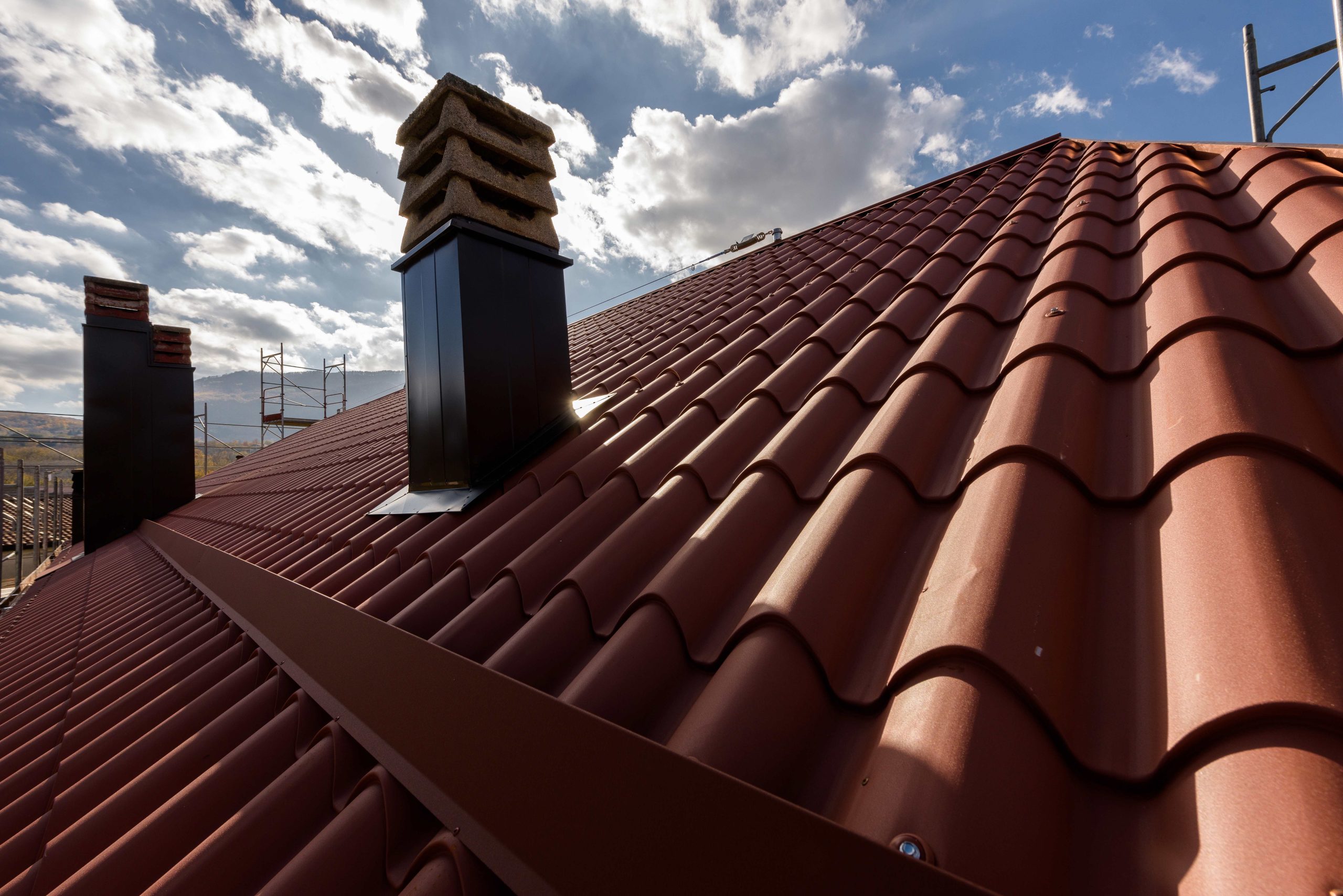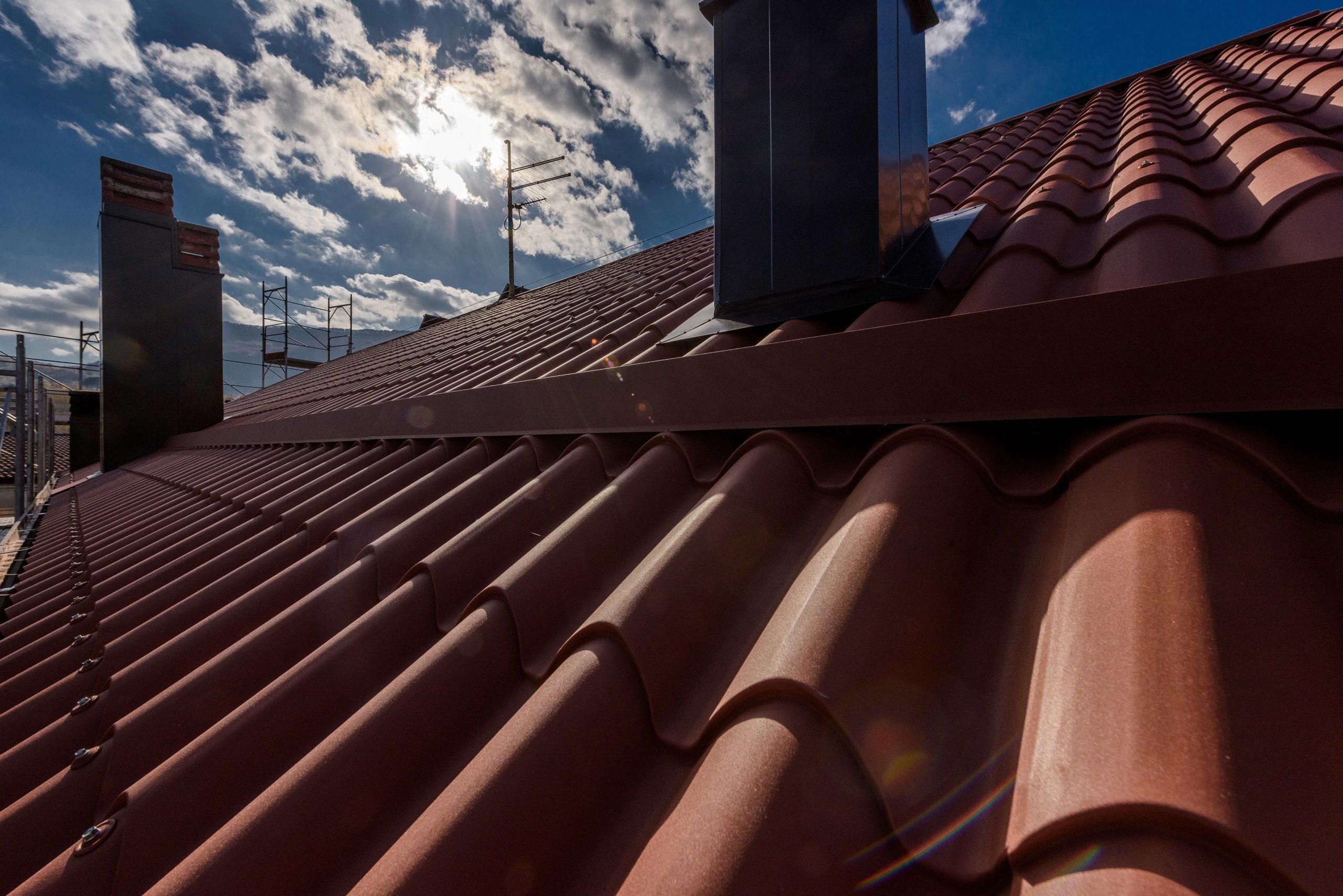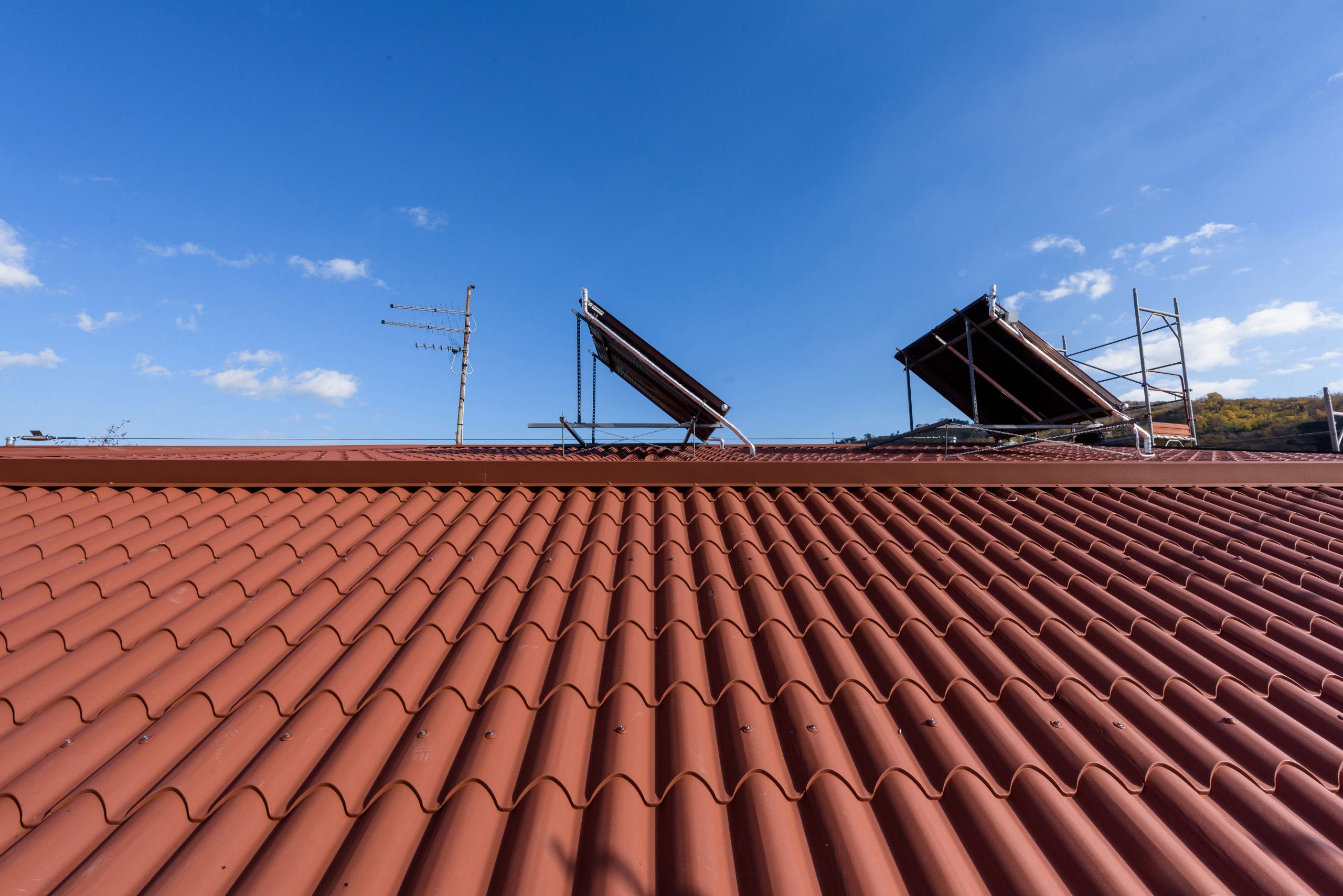 Realizzazione e ripristino di nuova una copertura in pannelli lastra Alubel IsoCoppo Piano rosso etrusco completa di lattoneria Avellino . Rifacimento tetti RutaRoof tel. +39 347 5963966 –